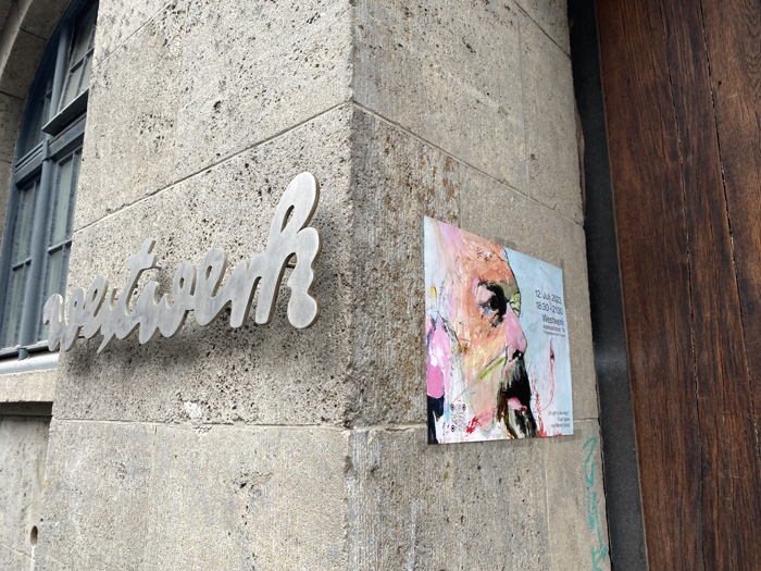 Die Bildhauerin Annette Meincke-Nagy vor und auf dem Bild