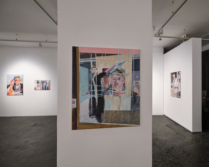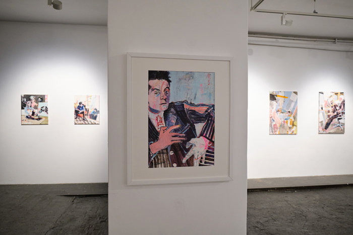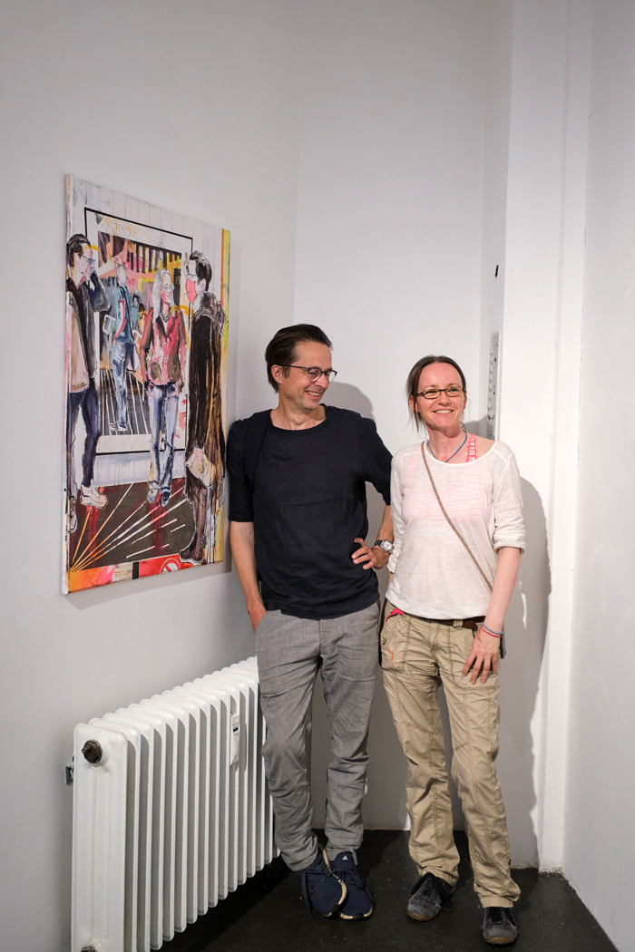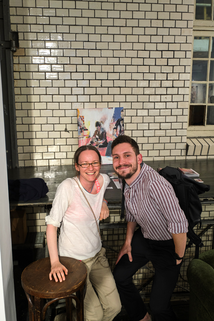 Mein Malereiprofessor und Maler Christian Hahn neben und auf meinem Bild.