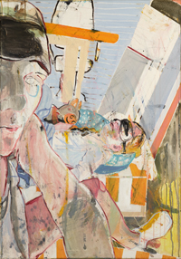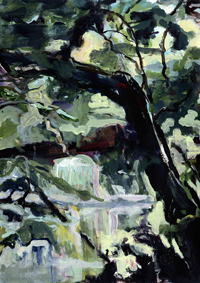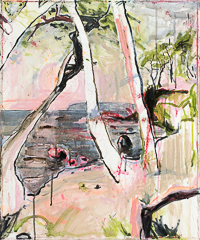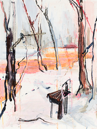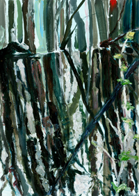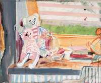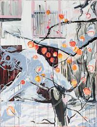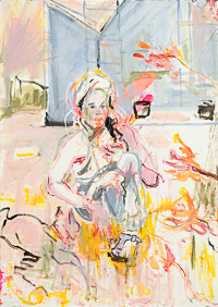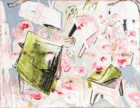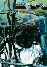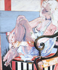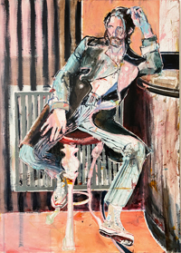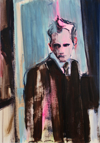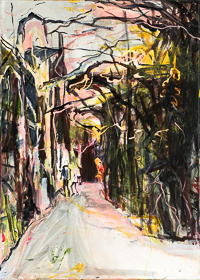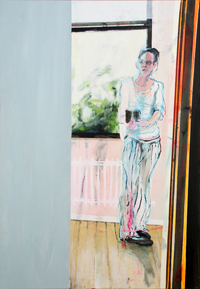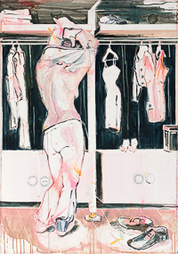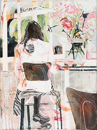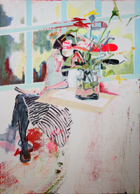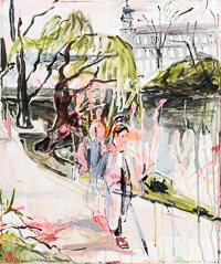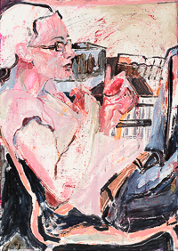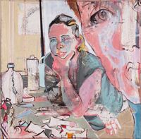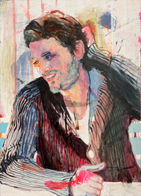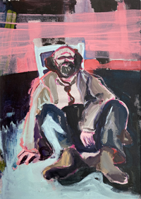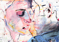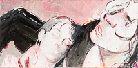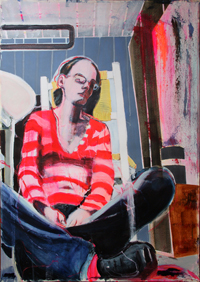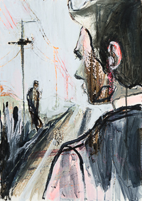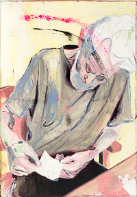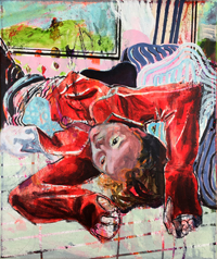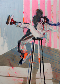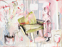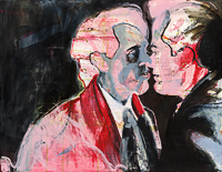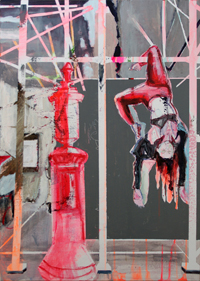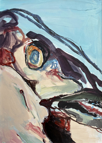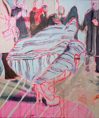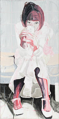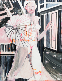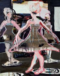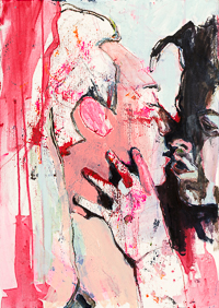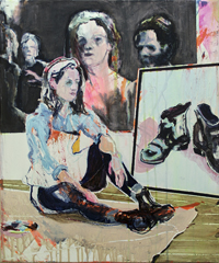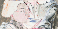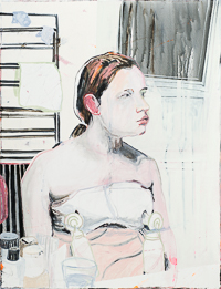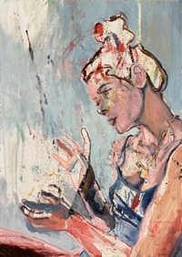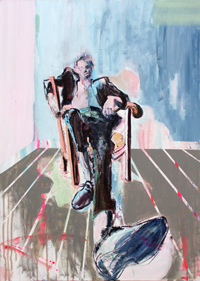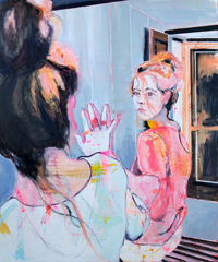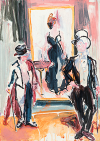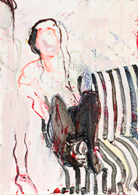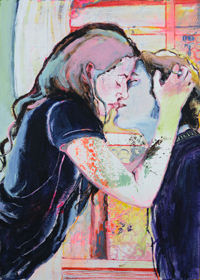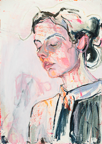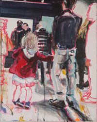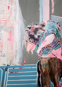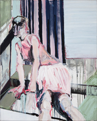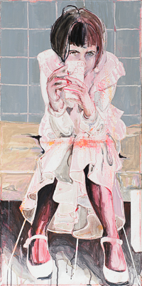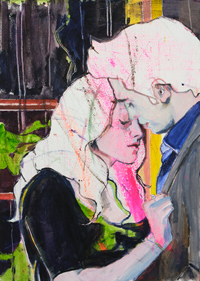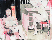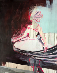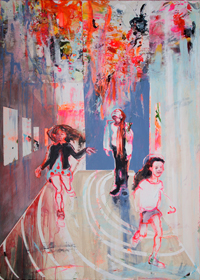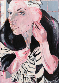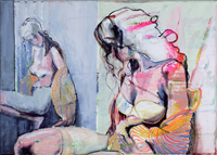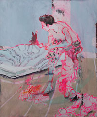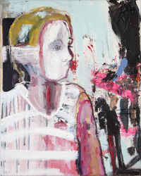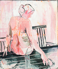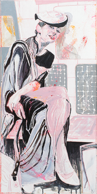 hinterfragt werden. Sie tut dies in Ihrer poetischen Stilistik. Einer an die Zeichnung orientierten Malerei, die auch an Toulouse-Lautrec erinnern.