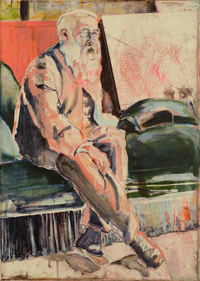 oder Ölfarbe auf den Untergründen Papier, Leinwand oder Holz festhält."