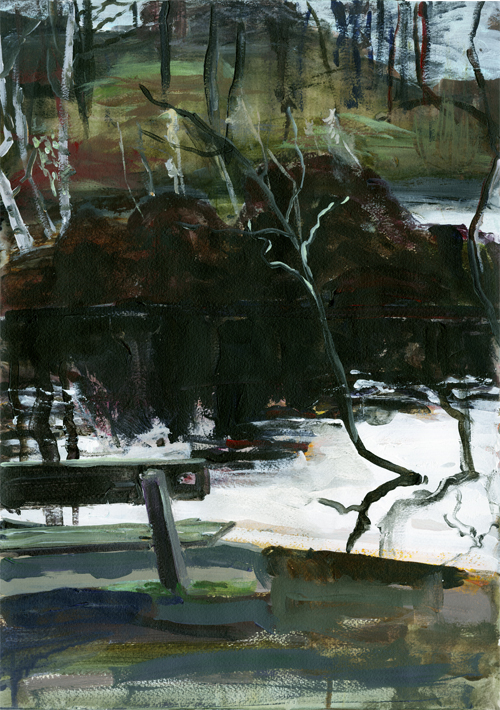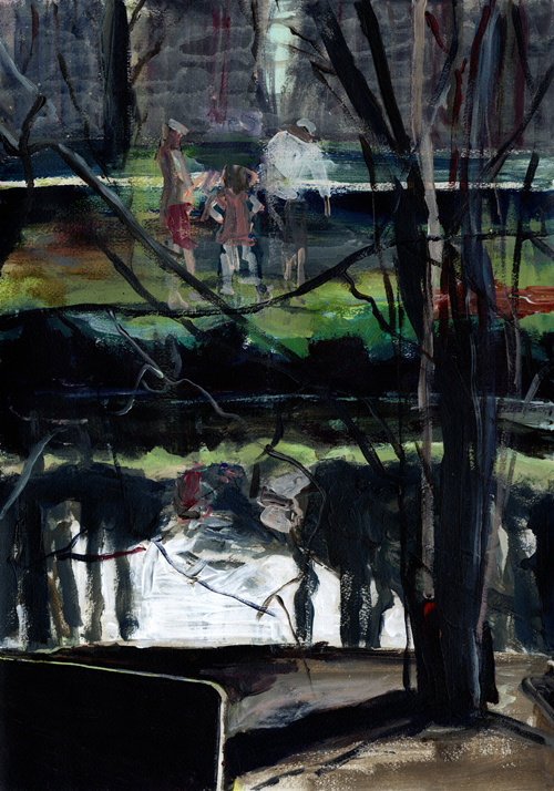 Eppendorfer Moor Bank, Acryl auf Papier, 48 x 34 cm, 2016