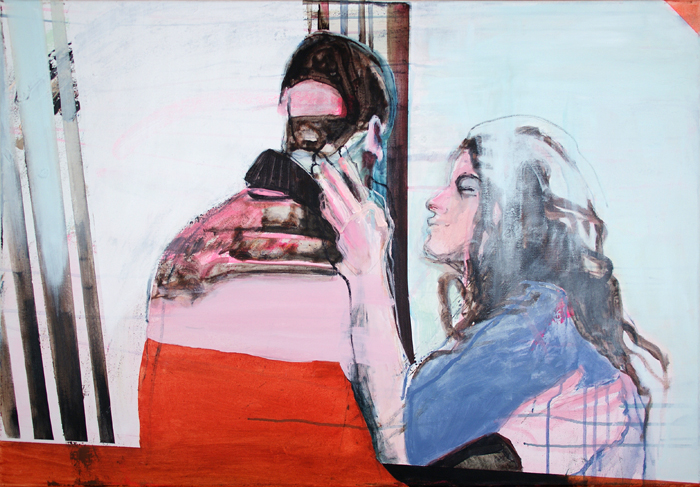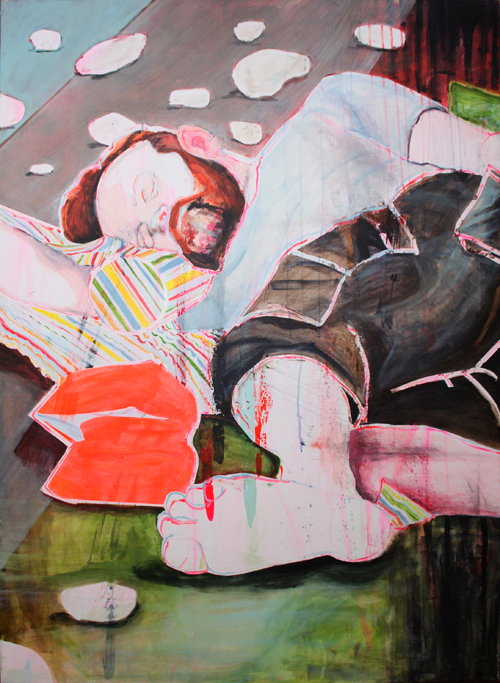 Doppelschlaf, Acryl & auf Leinwand, 100 x 70 cm, 2019