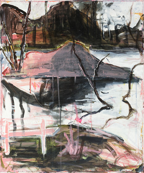 Bank im Eppendorfer Moor, Acryl auf Leinwand, 60 x 50 cm, 2025