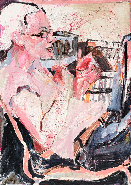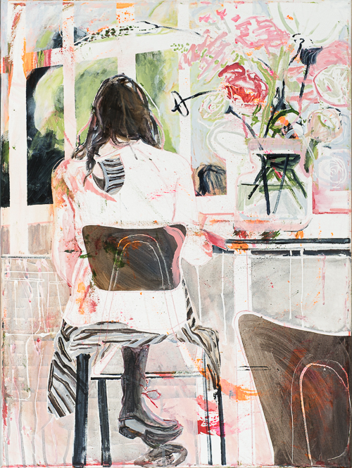 studio 35 - Selbstporträt, Acryl und Polychromos auf Papier, 48 x 34 cm, 2025