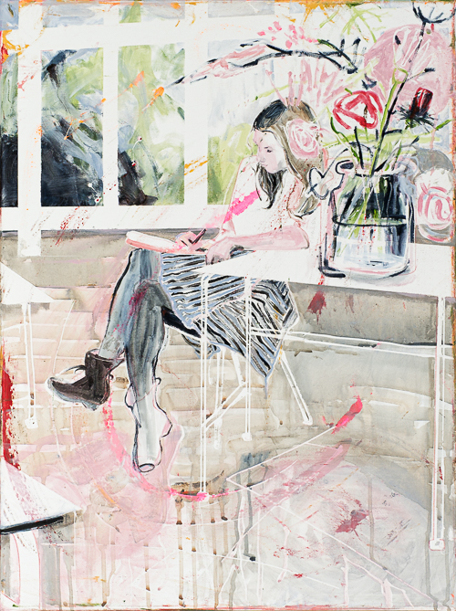 Blumen in der Armgardstraße II, Acryl und Polychromos auf Leinwand, 80 x 60 cm, 2025