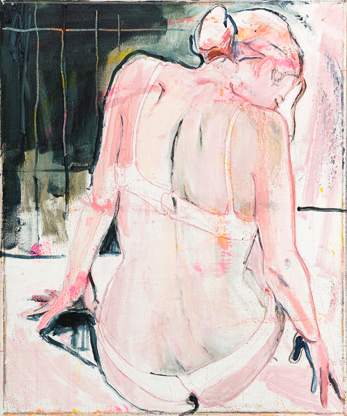 Rückansicht, Acryl und Polychromos auf Leinwand, 60 x 50 cm, 2025